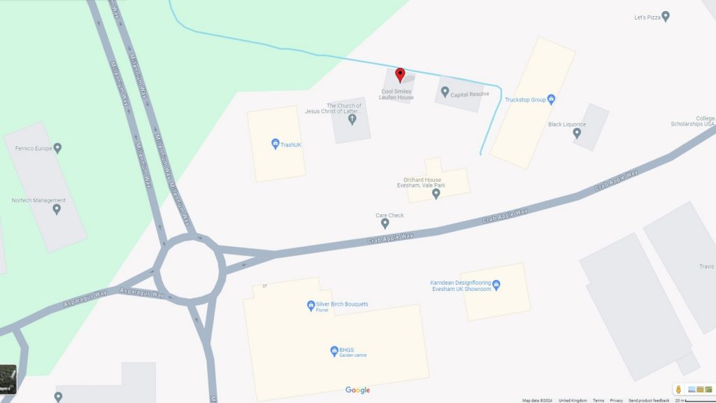 Laufen House Crab Apple Way Evesham Worcestershire WR11 1GP. You will find us opposite BHGS next door to the church.